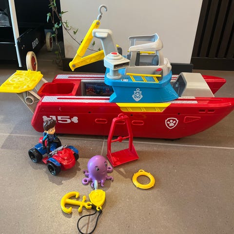 Paw Patrol Sea Patroller og Paw Patroller stor lastebil og redningsbåt i plast. Lyden funker ikke i båten. Følger med en blekksprut og et anker