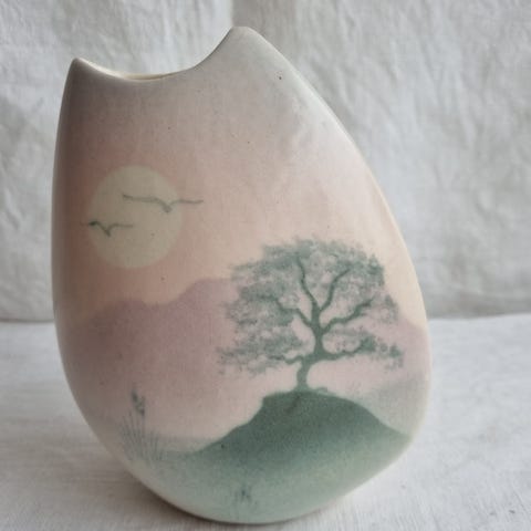 studiokeramikk, vintage keramikk, 70 tall, håndlaget vase, steingods, retro interiør, nordisk keramikk, kunsthåndverk, keramikkvase, brun keramikk