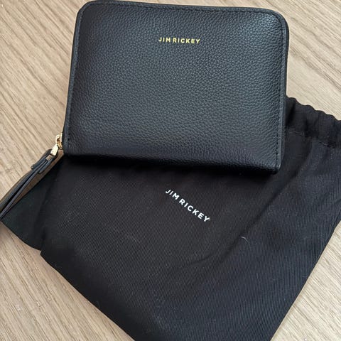skinnpung for dame i svart lær. Modellen har glidelåslukking på toppen og en utvendig kortlomme på baksiden. Innvendig hovedrom egnet for kort, kontanter og småting. Diskré Mulberry-logo i metall foran og detaljer i metallfarge som kompletterer det enkle uttrykket. Egner seg som liten lommebok eller veskeorganiserer i større vesker.