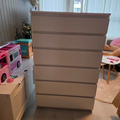 Selger en nesten ny malm kommode. Ødelagt mellomdel, se bilde. Har ingenting å si for funksjonaliteten. Kan muligens få en gratis reservedel fra ikea. Kvittering medfølger