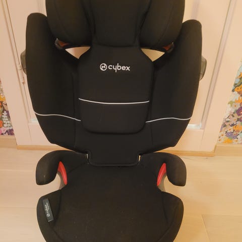 Cybex Solution S-Fix barnesete for barn fra ca. 15–36 kg. Barnesetet har høy rygg med sidekollisjonsbeskyttelse og justerbar hodestøtte. Setet festes i bilen med bilens trepunktsbelte, og kan i tillegg festes med Isofix dersom bilen har dette. Trekket er i mørk/svart farge. Egnet som beltestol til større barn innenfor angitt vektklasse.