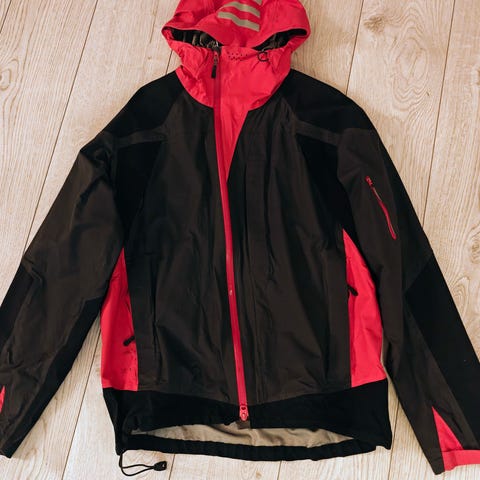 Nike jakke for herre i størrelse L. Jakken er flerfarget med hovedfarger i svart og oransje, og har detaljer i gult. Materialet er nylon. Høy krage og glidelås foran. Elastiske avslutninger nederst og ved ermene. Passer som ytterjakke til hverdagsbruk og lett utendørsaktivitet.