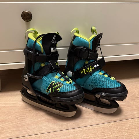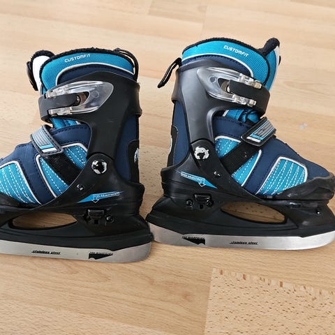 Head skøyter for barn i blå og svart farge. Modellen har justerbar støvel med spenner og borrelås for enkel tilpasning. Overdelen er i syntetisk materiale med polstret innside for økt komfort. Skøytene har fastmontert skøytejern med plastkappe rundt hæl og ankel for ekstra støtte. Egner seg til bruk på isbaner og frosne uteområder til lek og enkel skøyting.