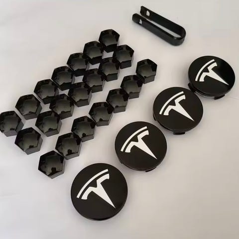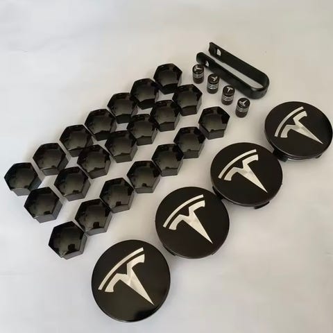Tesla senterkopper svart/sølv passer model S, 3, X og Y