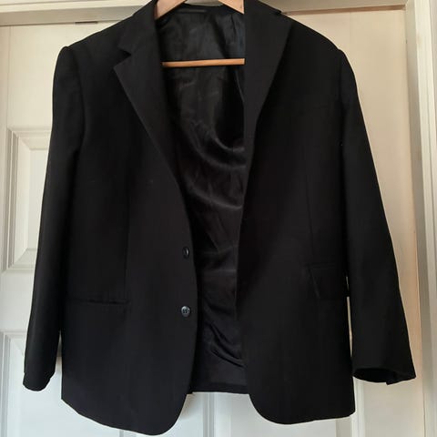 Pent brukt svart / koksgrå dressjakke i str 12 år / 152 selges rimelig.