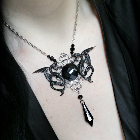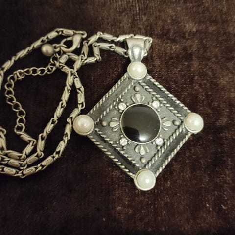 Grått, gotisk smykke med strass steiner, som nytt, kan sendes
