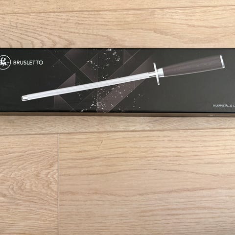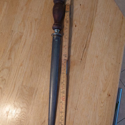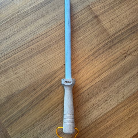Pent brukt slipestav i stål og med håndtak i silikon.