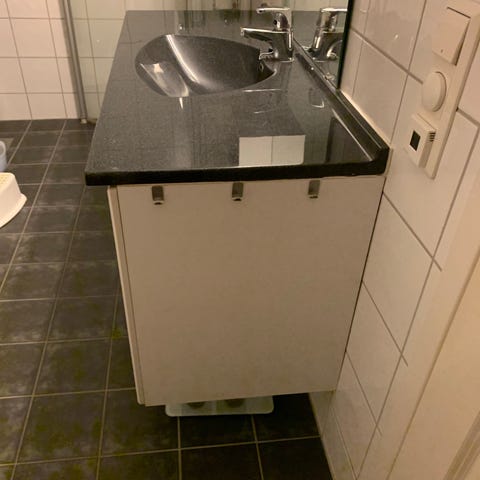 Dette er baderomsinnredning fra Nordfloor, som har stått utstilt i Skien. Den har blitt litt solbleket på den en siden.