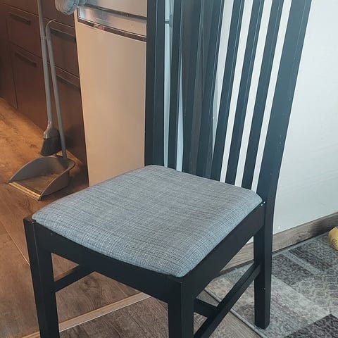 Jeg selger to kjempefine spisestoler. Jeg har kjøpt de selv på finn, så jeg vet ikke merket. De har jernben og svart skinn. De er stabile, og gode å sitte på. Slitt rundt kantene, ellers i god stand.