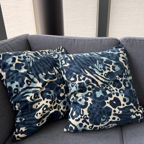 2 IKEA pynteputer i blå tekstil.