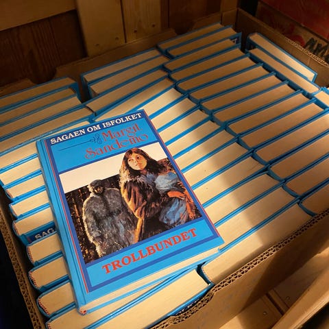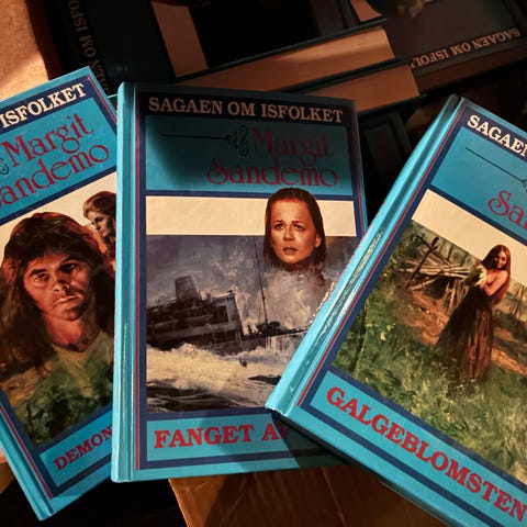 Komplett innbunnet 47 bøker Sagen om Isfolket av Margit Sandemo. En bok har litt skade i permen, ellers ser de fine ut.