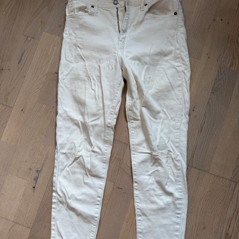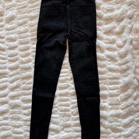 Levi's Mile High Super Skinny jeans for dame i svart denim. Buksen har høy midje og tettsittende passform hele veien ned. Størrelse L med livvidde W31. Klassisk femlommersmodell med glidelås og knapp i front, samt baklommer med karakteristisk søm.