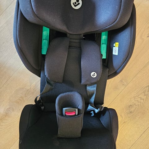 Selger et Maxi-Cosi Nomad Plus i fargen Authentic Black, et reisevennlig barnesete som kun er brukt et par ganger og fremstår i bra stand. Setet er ultrakompakt og lett, og monteres raskt – på ca. 30 sekunder – med bilens belter, noe som gjør det perfekt for taxi, leiebil og ferier. Det har forsterket sidekollisjonsbeskyttelse og 5-punkts sele som ivaretar barnets sikkerhet, samtidig som komfortabel polstring gir en behagelig tur. Setet kan enkelt foldes sammen når det ikke er i bruk. Det har alltid vært oppbevart pent. Oppbevarings-/reiseveske følger med for enkel transport og oppbevaring.
