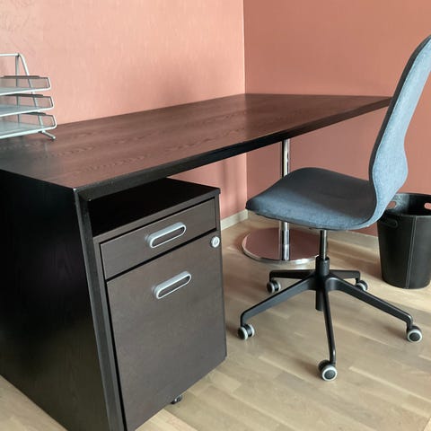 Selger et pent brukt skrivebord med tilhørende kontorstol. Passer perfekt til hjemmekontor, student eller barnerom.