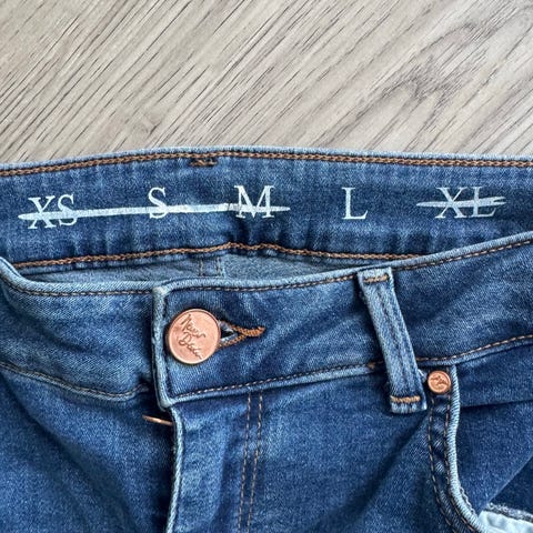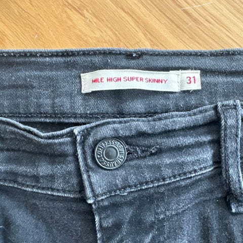 Levi's jeans for dame i blå denim. Buksen er i størrelse L med livvidde W31. Klassisk femlommersmodell med glidelås og knapp i front, samt beltehemper.