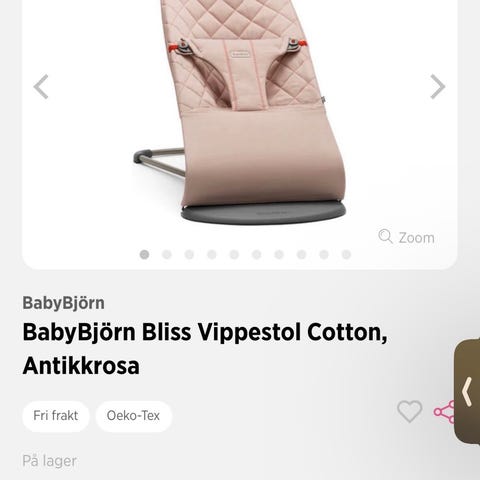 Ergonomisk Bliss vippestol fra BabyBjörn. Perfekt når du vil ha hendene frie til annet, samtidig som barnet ditt hviler eller leker trygt.