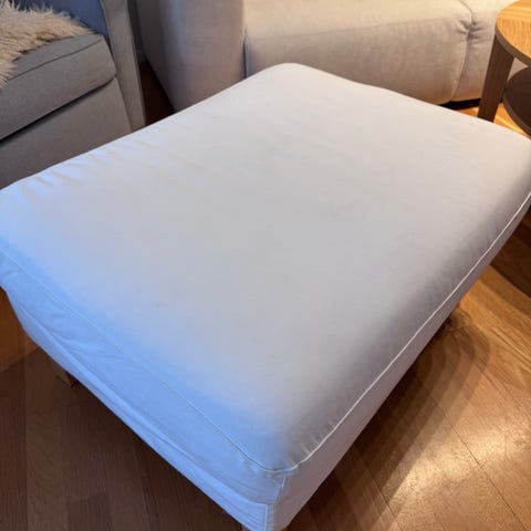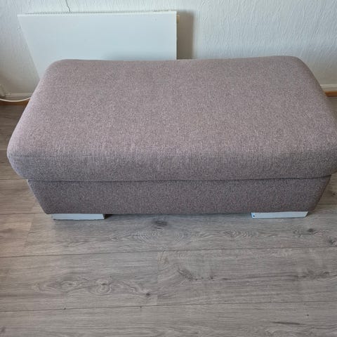 Puff med plass til oppbevaring selges.