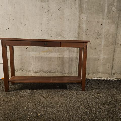 Pent brukt stuebord med hylle under.