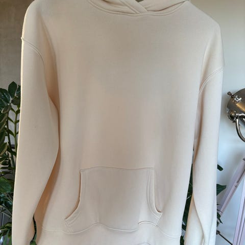 Hvit hettejakke med glidelås. Ikke brukt, prisen henger på.
