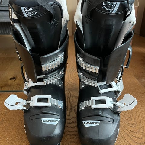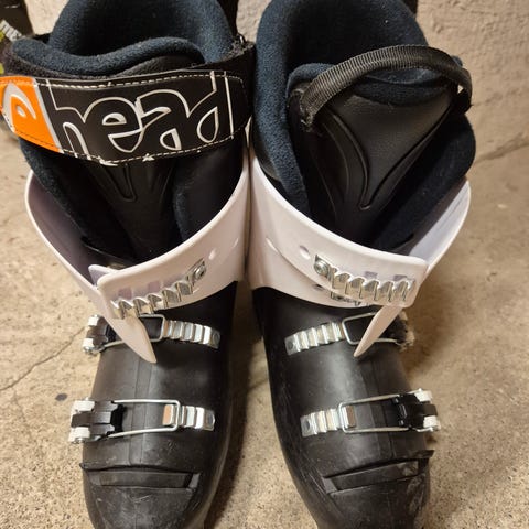 Head alpinstøvler i svart og hvit farge. Modellen har fire justerbare spenner i metall og kraftig borrelåsstropp øverst for god tilpasning rundt leggen. Innerstøvlene er polstret for komfort og støtte.