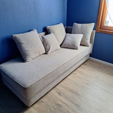 Sovesofa fra IKEA. Noen synlige flekker på sittedelen