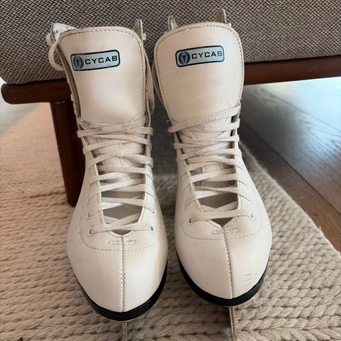 Cycab kunstskøyter for barn i størrelse 35. Klassisk hvit modell med snøring og høy ankelstøtte.