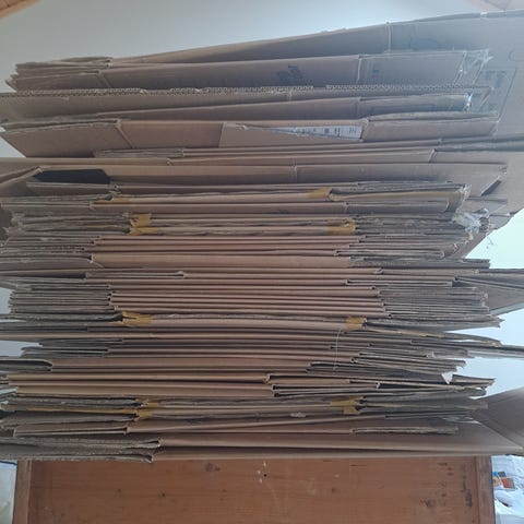 Totalt 37 flyttekasser.