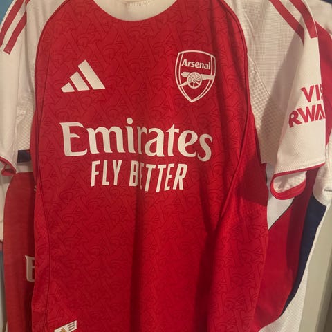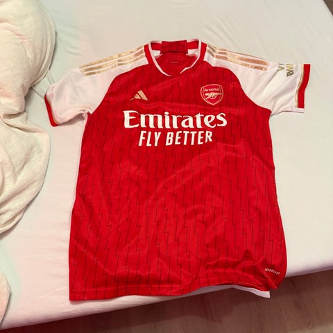 Adidas Arsenal fotballdrakt i størrelse L. Drakten er i rød og hvit med klubbmerke og sponsorlogo på brystet. På ryggen står Ødegaard og nummer 8. Slim fit-passform. Egnet som supportereffekter eller til bruk ved fotball og trening.