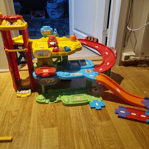 Garasje for utrykningskjøretøy for de minste, med nødlys og sirenelyder.