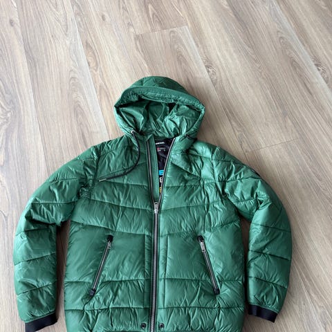 Diesel vinterjakke for herre i størrelse M. Jakken er svart og laget i polyester. Den har glidelåslukking foran kombinert med knappelukking, samt flere lommer med glidelås og knapper. Jakken har ribbestrikket kant nederst og ved ermene for bedre passform. Kragen har pelskant og innsiden av kragepartiet har et mykt, loddent materiale for ekstra varme. Egnet som ytterjakke i kaldere vær.