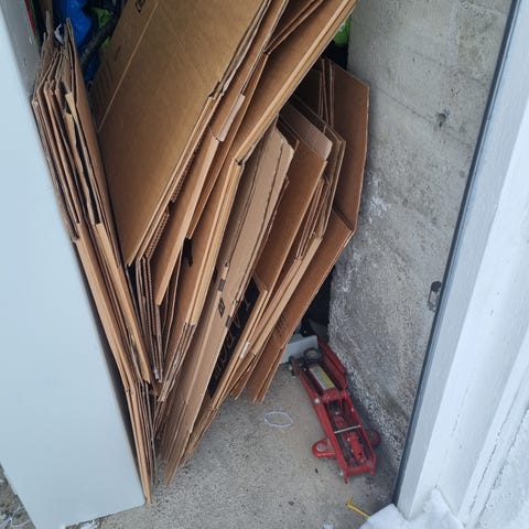 Flytteesker i large fra Clas Ohlson gis bort, de er brukt i til en flytting, men kan fint brukes flere ganger. De er pent brukt og helt rene😊