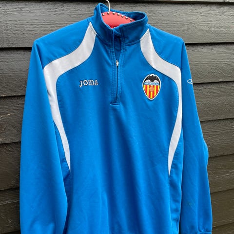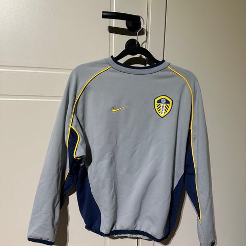 Kappa Leeds United fotballgenser for herre i størrelse XL. Genseren er mørkeblå med lyseblå detaljer i halsen. Klubblogo fra Leeds United er plassert på brystet, sammen med sponsortrykk på fronten. Kappa-logo er trykket på begge ermer. Genseren har rund hals og lange ermer, og er egnet til fotball og annen trening eller fritidsbruk.