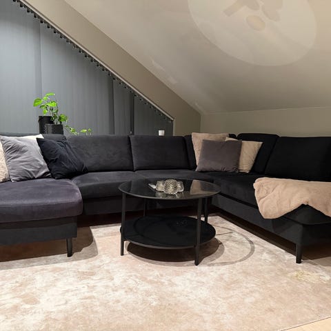 Pent brukt Shibuya hjørnesofa fra Skeidar. Svart sofa i velur. Selges da jeg flytter og den ikke passer inn i den nye leiligheten. Brukt i underkant av to år.