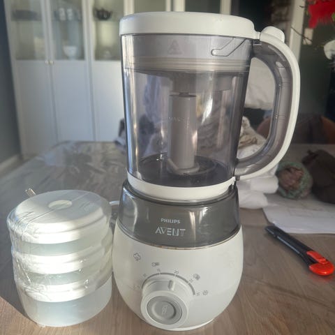 Philips Avent babymatlagingsmaskin med tilbehør.