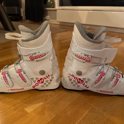 Rossignol Powah alpinstøvler i størrelse 265 mm. Støvlene er hvite med røde og sølvfargede detaljer. Modellen har fire justerbare spenner og polstret innersko for bedre passform og komfort. Passer til bruk i alpinbakke med vanlige alpinbindinger.