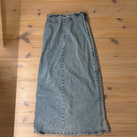 Kjempe fint denim skjørt fra Please. Str S, super stretch og behagelig på. Mykt og godt. Nypris 2000. Brukt 1 gang- som nytt