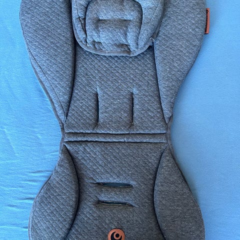 Innlegget passer i de fleste barnevogner med standard seleåpninger. Materialet er polstret tekstil som gir myk sitteflate for barnet. Fargen er nøytral grå som passer til mange vogner.