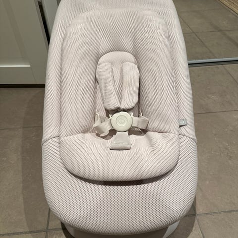 Nyfødtsete som passer til Kaos’ KLAPP-stol selges fordi vår baby har vokst ut av det. Setet er i grønn, med vaskbart trekk.
