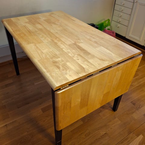 Selger mitt kjøkkenbord pga plassmangel. Noen bruksmerker men godt vedlikeholdt. Bena er skrudd av bordet for lettere transport men er enkle å skru på igjen. Må hentes.