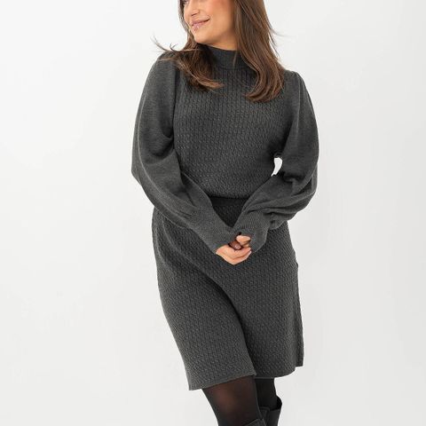 Selected Femme ullkjole i størrelse M. Kjolen er grønn og strikket i ull. Den har rund hals, lange ermer med ribbestrikkede mansjetter og ribbekant nederst. Lengden går omtrent til over kneet, og passformen er rett og komfortabel. Egnet som hverdagskjole i kjøligere vær, og kan brukes alene eller sammen med strømpebukse og støvler.