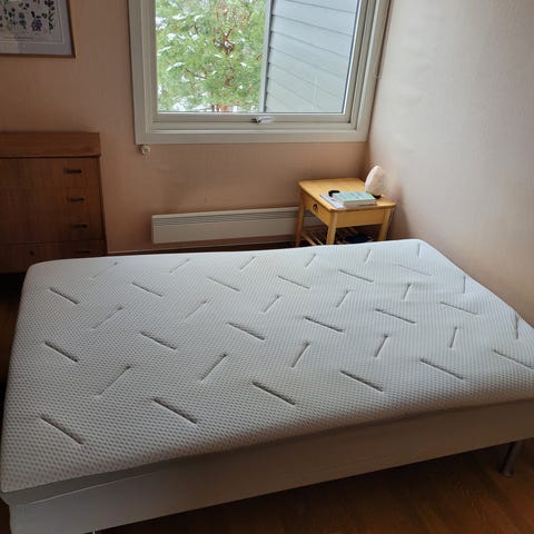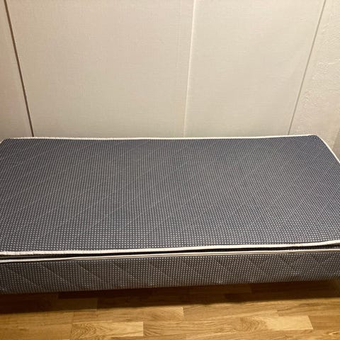 Seng/rammemadrass gis vekk mot henting. Må hentes i dag eller i morgen.