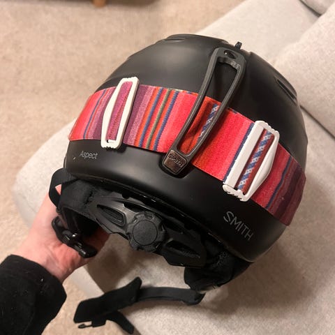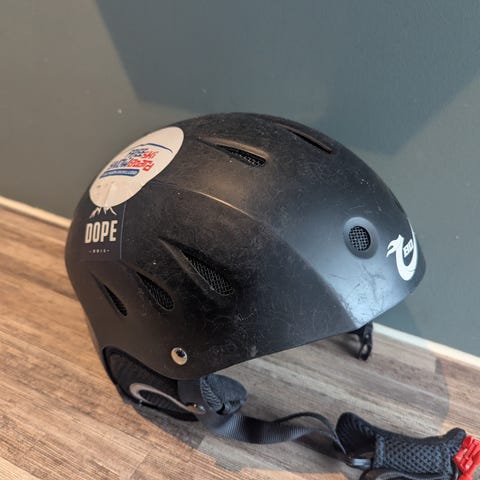 Smith skihjelm i størrelse S (55–56 cm). Hjelmen er svart med ventilasjonsåpninger og justerbar hakestropp. Bak på hjelmen er det feste for skibriller. Egnet for bruk til ski og snowboard. Doop klistermerke kan tas av.