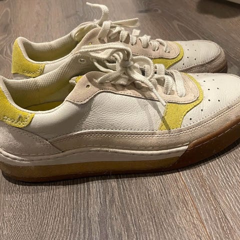 Skoene er brukt, men i god stand. Normal slitasje på såle og litt bruksspor, men mye sko igjen. Klassisk og sporty design i hvit, blå og rød – passer til både jeans og casual antrekk.