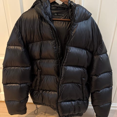 Zara vinterjakke for herre i størrelse XL. Jakken er blå og laget i polyester. Modellen har hette med avtagbar eller fast pelskant (imitasjon ikke bekreftet), ribbestrikket kant nederst og ved ermene, samt flere ytterlommer med klaff. Fôret innside i polyester gir ekstra isolasjon. Passer som ytterjakke i den kaldere sesongen.