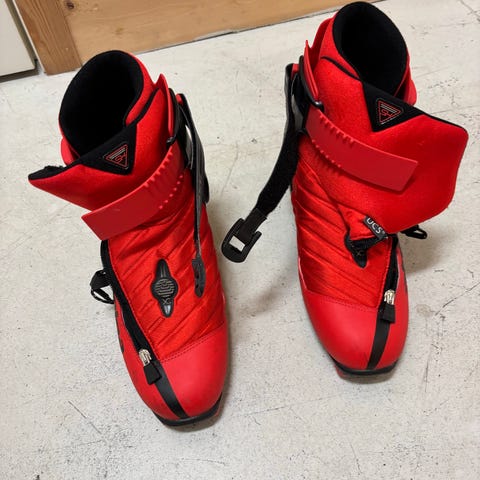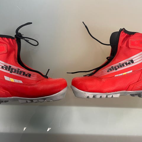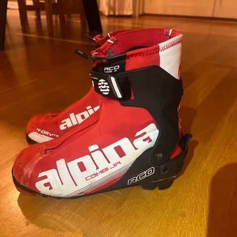 Alpina racing rci kombisko langrennsstøvler i rød farge. Støvlene har høy ankelstøtte med borrelåsreim over vristen for bedre stabilitet og passform. Størrelse 35