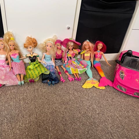7 dukker, scooter, dyr og bil i god stand.