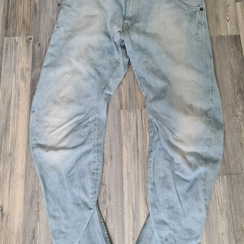 Tapered raw denim jeans fra G-Star, strl. 28/32. Mange kule detaljer