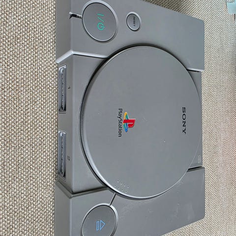 Konsollen er en original PlayStation (PS1) PAL-modell med modellnummer SCPH-7502. Den har CD-ROM-stasjon for PlayStation-spill på plate.