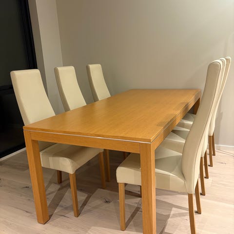 Spisestuebord, sofa til spisestue, spisestuestoler