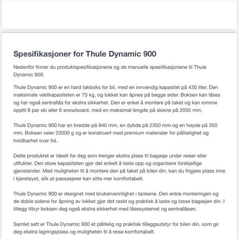 Thule takboks i svart utførelse. Aerodynamisk design som monteres på takstativ for ekstra bagasjeplass på bilen. Egnet for transport av bagasje, ski eller annet utstyr på bilturer. Åpnings- og festesystem kan variere etter modell, og boksen krever kompatibelt takstativ for montering.
